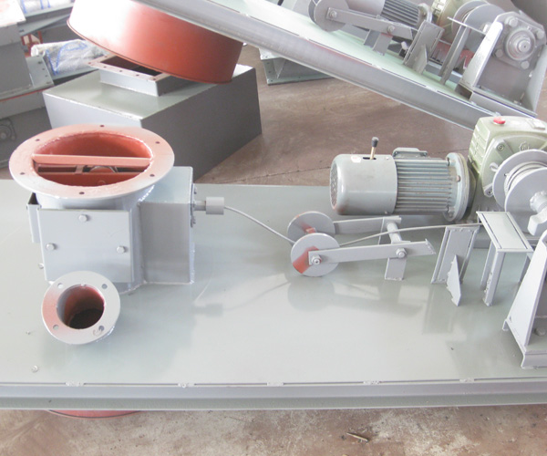 1、斜槽 2、電動開關閥 3、充氣螺旋閘門 4、出料口連接槽