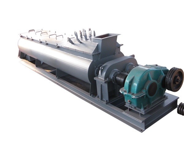 雙軸攪拌機(jī)利用兩根呈對稱狀的螺旋軸的同步旋轉(zhuǎn),在輸送干灰等粉狀物料的同時(shí)加水?dāng)嚢瑁鶆蚣訚窀苫曳蹱钗锪希_(dá)到使加濕物料不冒干灰又不會(huì)滲出水滴的目的,從而便于加濕灰裝車運(yùn)輸或轉(zhuǎn)入其它輸送設(shè)備。
